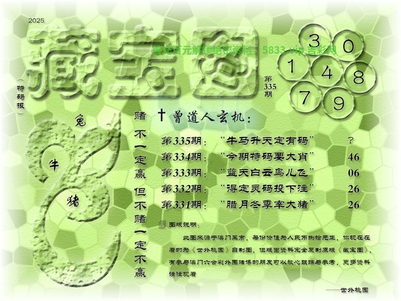 339期:电脑推算/三字解平特/藏宝特码诗/一句输尽光